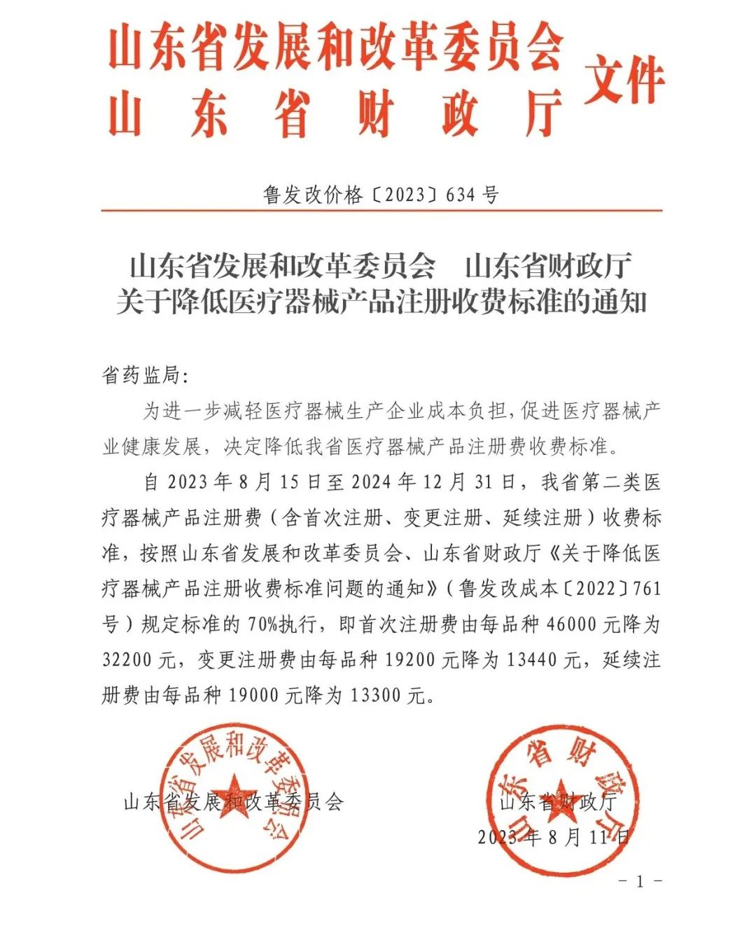 8月14日,山東省發(fā)展和改革委員會、山東省財政廳《關(guān)于降低醫(yī)療器械產(chǎn)品注冊收費標準的通知》: