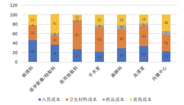 根據(jù)HIA發(fā)布的《中國首部公立醫(yī)院成本報(bào)告(2015)》,我國公立醫(yī)院各科室成本構(gòu)成中,病理科人員成本占總成本比達(dá)到46%,顯著高于其他臨床科室;檢驗(yàn)、影像科室這一指標(biāo)分別為35%、27%。
