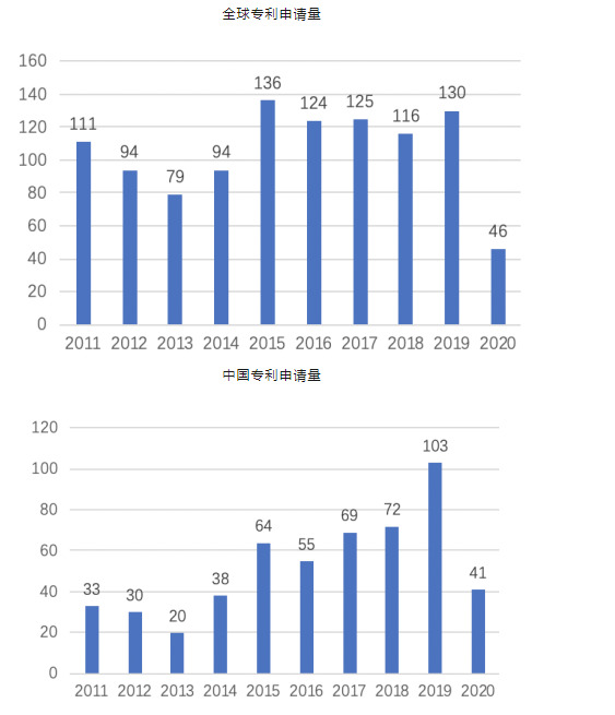 上圖所示為以“病理診斷”和“細(xì)胞病理”進(jìn)行全球檢索得到的近10年的專利申請情況。從圖中可以看出,病理診斷領(lǐng)域近10年約有1055件專利申請(由于發(fā)明專利有18個月公開的滯后期,實(shí)用新型從申請到公開也需一段時間,因此2019年和2020年數(shù)據(jù)有所偏差),其中發(fā)明專利604件、實(shí)用新型專利179件。從圖2中可以看出,全中國病理診斷領(lǐng)域近10年約有525件專利申請(由于發(fā)明專利有18個月公開的滯后期,實(shí)用新型從申請到公開也需一段時間,因此2019年和2020年數(shù)據(jù)有所偏差)。