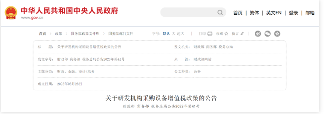 財政部 商務(wù)部 稅務(wù)總局關(guān)于研發(fā)機構(gòu)采購設(shè)備增值稅政策的公告