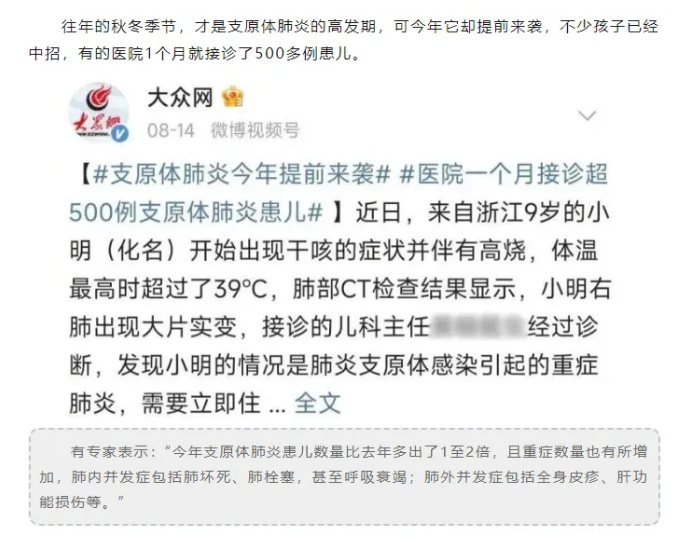 根據(jù)復旦兒科醫(yī)院數(shù)據(jù)顯示:近期兒童發(fā)熱主要集中在甲流、支原體等病原微生物感染。其中,甲流單日檢出達100多例,較9月1日前增長了30%。周末就診高峰期,單日掛水人次可達900人。