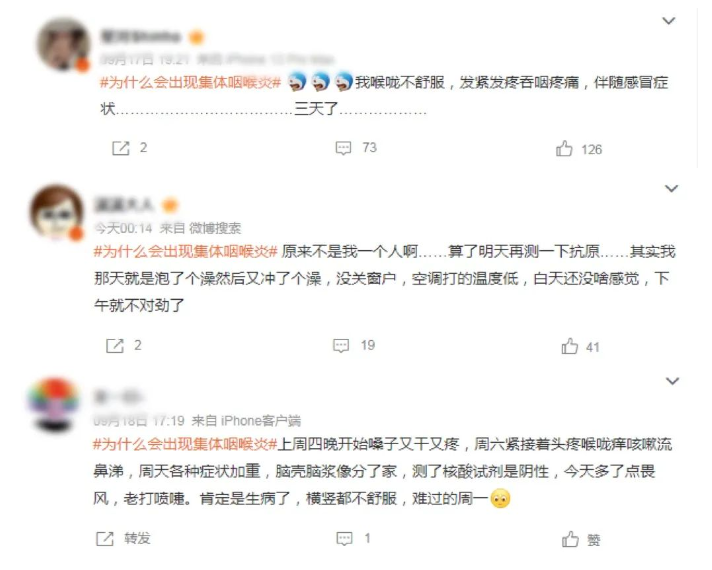 近日,話題#為什么會(huì)出現(xiàn)集體咽喉炎#在多個(gè)社交平臺(tái)登上熱搜,引發(fā)很多人的關(guān)注和討論。